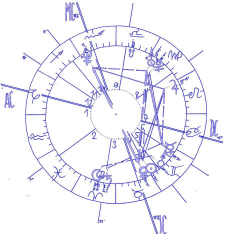 Abbildung der Planetenkonstellation im Geburtsaugenblick. Es besteht aus der
