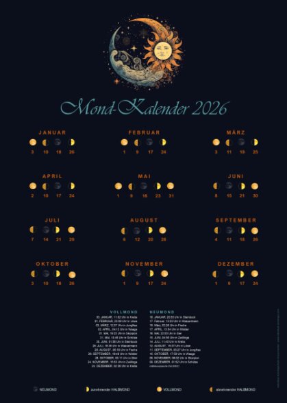 Wer diesen Rhythmus bewusst nutzen möchte, findet im Mondkalender einen zuverlässigen Begleiter, um das Jahr im Einklang mit den Mondphasen zu gestalten.